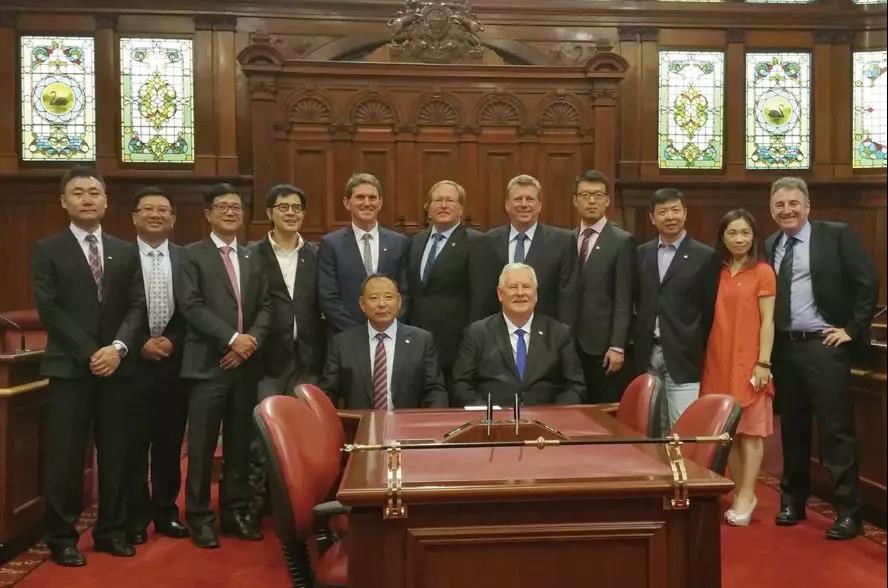 2015年11月2日,陳希濱董事長在西澳議會立法委員會主席巴里·豪斯、西澳立法委員會上議會議員馬克·劉易斯、西澳州政府農業食品部經理特里的陪同下,參觀了西澳國會大廈和上下議院,并在議會大廈共進午餐。